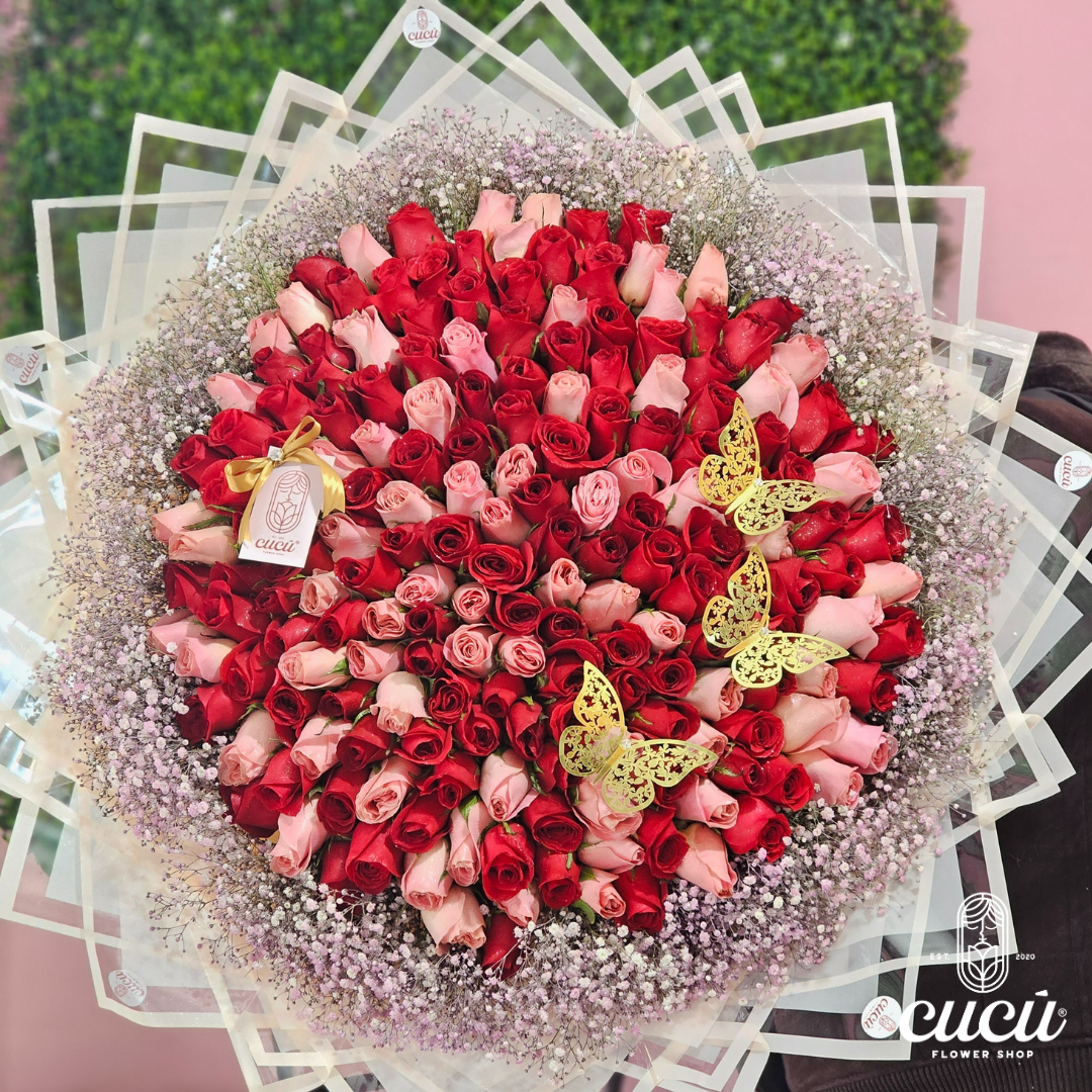 Sumérgete en la magia de 200 rosas exuberantes rodeadas de delicada flor de nube, creando un ramo que es puro romance en movimiento. Cada pétalo cuenta una historia de elegancia, mientras que la suave textura de la flor de nube añade un toque etéreo y envolvente. Perfecto para celebrar momentos extraordinarios, este ramo generoso es un abrazo floral que dice más que mil palabras. ¡Prepárate para robar suspiros!